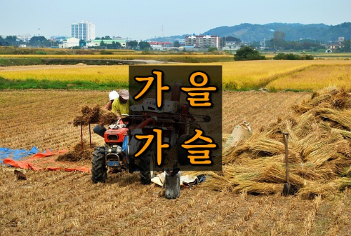 끊다고 곡물의 이삭을 끊어내는 것이 추수하다의 뜻이다. 하지만 어원은 살짝 다르다. 가을은 '00을 끊다'의 옛말인 '갓다'에서 왔다고 한다. 갓다는 곡물의 이삭을 끊어 내어 모아 탈곡하는 것을 의미했던 것이다.