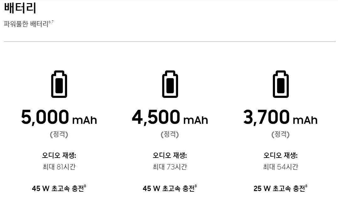 밧데리 용량은 21보다 다운되었습니다. 울트라만 그대로 유지하고 있네요. 아마도 사이즈가 작아지고 절전 기능이 좋아져서 그런 것 같습니다.