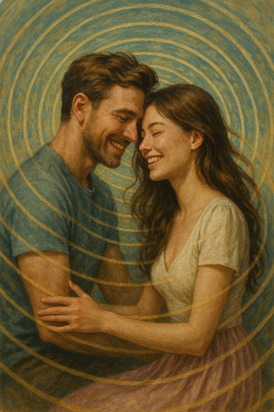 특히 남성과 여성의 관계는 이 얽힘의 대표적 사례입니다. 우리가 처음 누군가에게 강하게 끌릴 때, 그 사람은 단지 외적인 조건 때문만이 아니라, 나의 내부 진동과 공명하는 파동 에너지를 가진 존재일 가능성이 높습니다. 이때 발생하는 것이 바로 **공명(Resonance)**입니다. 이는 말 그대로 두 개의 파동이 진동수를 맞춰 하나의 리듬처럼 움직이는 현상으로, 서로가 원래 연결되어 있던 존재처럼 느껴지는 이유입니다. 그래서 어떤 사람에게는 말도 안 했는데도 편안하고 익숙한 감정을 느끼게 되며, 그 연결은 마치 태초부터 예정되어 있던 것처럼 자연스럽습니다.