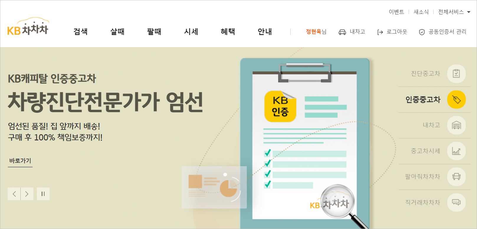 자주는 아니지만 종종 들어가는 확인하는 곳은 KB차차차입니다.