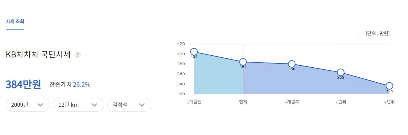 중고차 시세입니다. 물론 이건 확정이 아니라 대략적인 가격이며, KB차차차 안에서 거래되는 차량에 맞춘 것입니다. 하지만 거의 비슷하다 생각하시면 됩니다. 특이한 건 현재 가격과 앞으로의 잔존가치까지 보여 주네요.