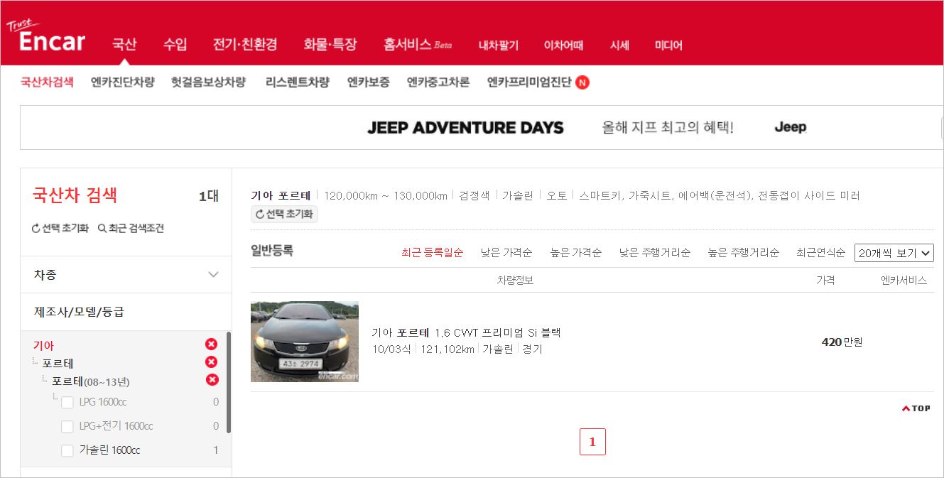 확인은 두 가지로 보입니다. 먼저는 신차 가격으로 보이고, 다음은 현재 중고차 시세입니다. 지인이 신차로 구입한 것을 알고 있는데 의외로 차량 가격이 적네요. 아벤떼를 타다 갑자기 퍼져서 급하게 중고로 구입해 타고 있는데, 포르테.. 그리 맘에 들지 않습니다. 그냥 편하게 타는 차량이고, 고속도로나 장기 운전은 힘들더라고요.