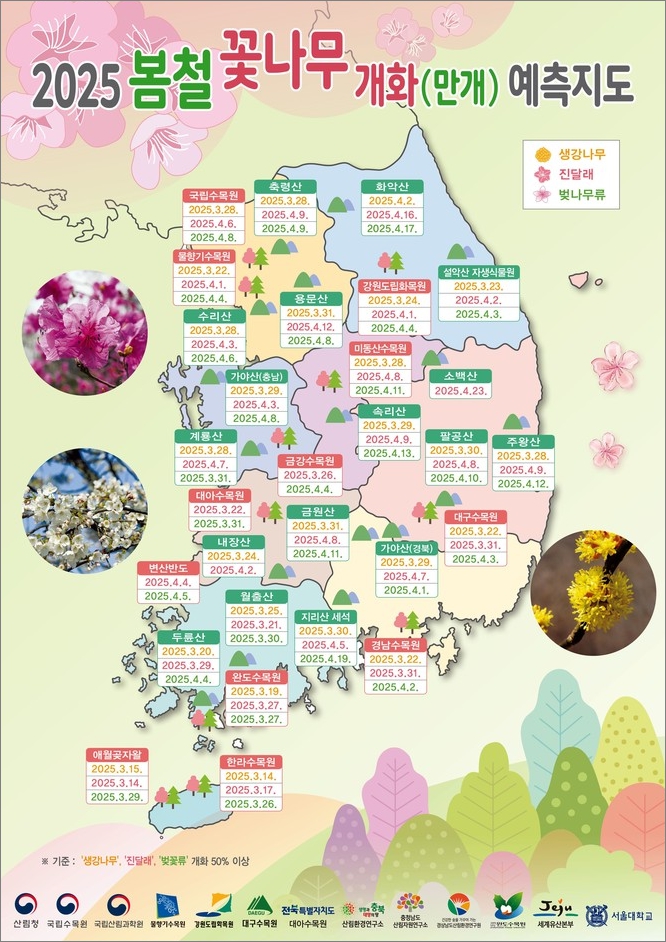 대한민국 2025년 벚꽃 개화 시기 예상도