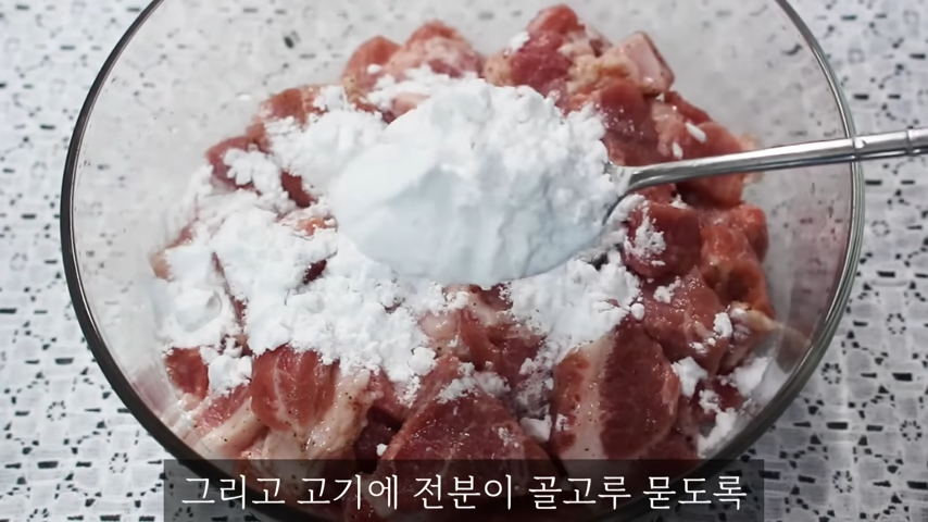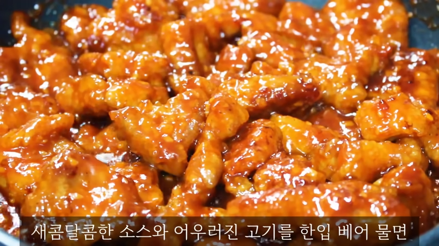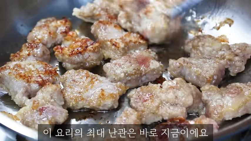 치킨보다 더 맛있는 돼지고기 튀김입니다. 목살을 전분가루 입히고 양념에 버무려 굽는 것입니다. 정말 정말 맛있습니다.