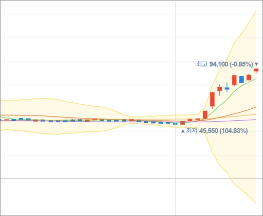 일단 에코프로 종목으로 설명해 보겠습니다. 차트는 2025년 하반기 차트입니다. 직접 보기 원하시는 분들은 아래의 링크에서 확인해 보십시오.