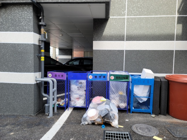재활용품 : 물로 세척 후 투명한 비닐을 사용하여 대문 앞 또는 지정된 장소 배출