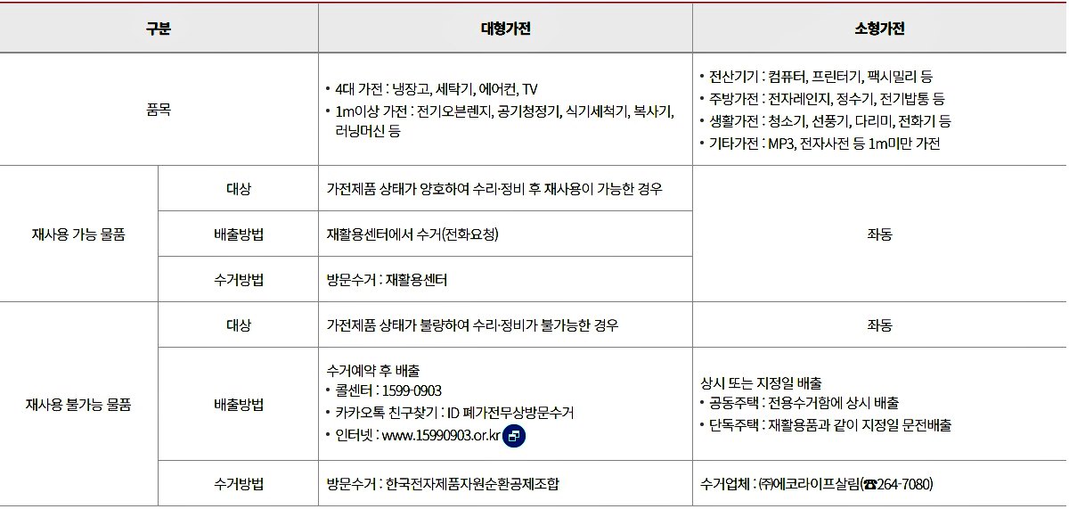 위의 이미지는 북산광역시 북구 사이트 [폐가전 재활용 요령]에서 캡처한 것임을 밝힙니다.