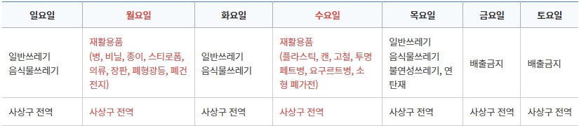 사상구 쓰레기 배출일과 방법에 대한 더 자세한 내용은 사상구 홈페이지 청소환경과 페이지를 참조하시기 바랍니다.