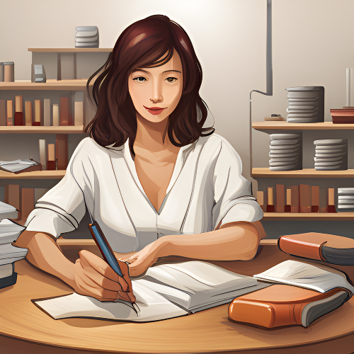 블로그운영. 책상에 앉아 글을 쓰는 여성 이미지