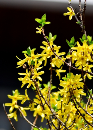 개나리는 가지가 다소 곧게 뻗는 형태를 가지며, 가지의 질감은 영춘화에 비해 단단하고 질깁니다. 겨울 동안 가지가 갈색 내지 회갈색으로 변색되며, 봄에 꽃을 피우기 시작합니다. 가지가 줄기처럼 곧고 탄력성이 있으며, 덩굴성보다는 관목형 성장 습성을 나타냅니다.