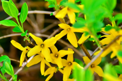 개나리는 영춘화보다 약간 늦은 3월 중순에서 4월 초에 걸쳐 만개합니다. 전국적으로 널리 분포하며, 도심, 공원, 도로변, 산기슭 등 다양한 환경에서도 잘 자랍니다. 개나리는 특히 한국을 대표하는 봄꽃 중 하나로 인식되어 많은 지역축제에서도 중심이 되는 꽃입니다.