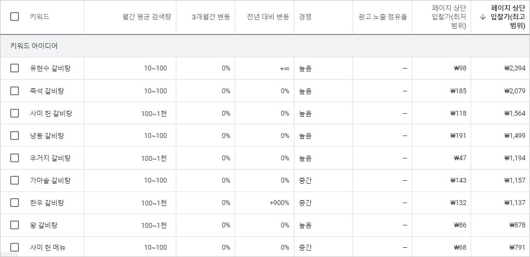 자동차 키워드입니다. 키워드마다 단가가 엄청나죠? 왜 이럴까 싶지만 생각해 봅시다. 나도 갈비탕, 옆집도 갈비탕집입니다. 둘이 경쟁합니다. 그럼 당연히 똑같은 키워드를 사거나 비슷한 키워드를 살 겁니다. 그럼 당연히 단가가 올라가죠. 하지만 갈비탕 집이 자동차 키워드를 살 필요는 없죠. 자신과 연관이 있는 키워드를 구입해야 하니까요. 이런 개념입니다. 동일한 키워드지만 계절이나 시기마다 다릅니다. 지금은 내연기관 관련 차보다는 전기차가 핫하죠. 그럼 10년 전에는요? 아이스크림이란 키워드는 여름에 비쌀까요 겨울에 비쌀까요? 그럼 졸업 선물은 2월에 비쌀까요? 4월에 비쌀까요? 이처럼 키워드는 요동적이고 변수가 굉장히 많습니다. 계절별, 시기별, 연도별로 다 다릅니다. 심지어 오전 오후도 다릅니다.
