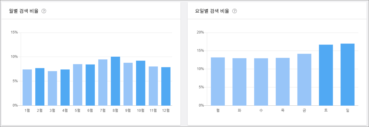 아래는 [진주 맛집]으로 검색한 검색 결과입니다. 한 달 무려 79,800회가 검색되고, 일 년 내내, 요일별로 거의 비슷하게 검색이 되는 것을 알 수 있습니다. 키워드 하나만 잘 잡아도 한 달에 무려 8만 명 가까운 사람들이 찾아옵니다. 이런 글에 1000개 정도 쌓이면 7천만??? 한 달에? 물론 그러지는 않을 테지만 실제로 많은 유입이 일어납니다.
