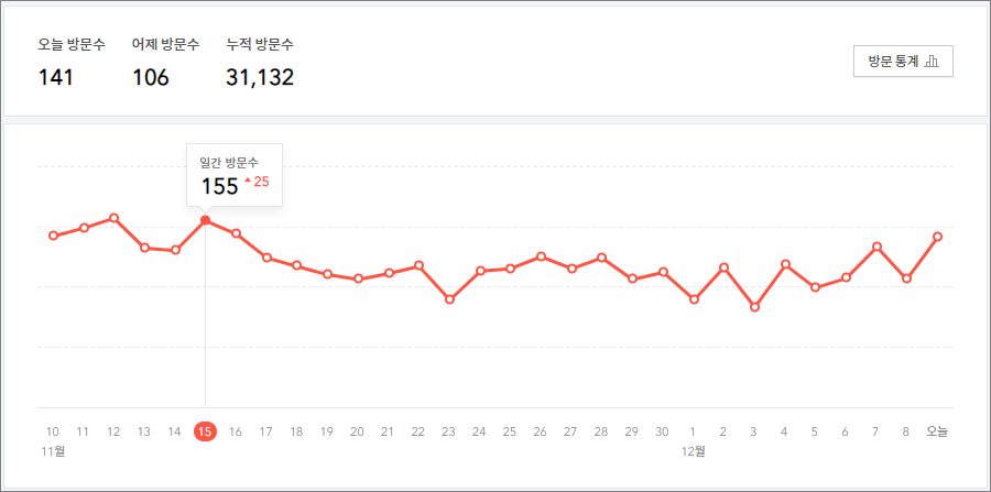 현재 이 블로그의 글은 아직 200개가 되지 않았습니다. 글을 2주에 두세 개를 쓰지만 하루 약 150명 정도 꾸준히 들어오고 있습니다. 아마 시간이 지나면 지날수록 더욱 많은 유입이 일어날 겁니다. 지금은 자세히 쓰지 않고 목록을 정리하는 수준이기 때문입니다.