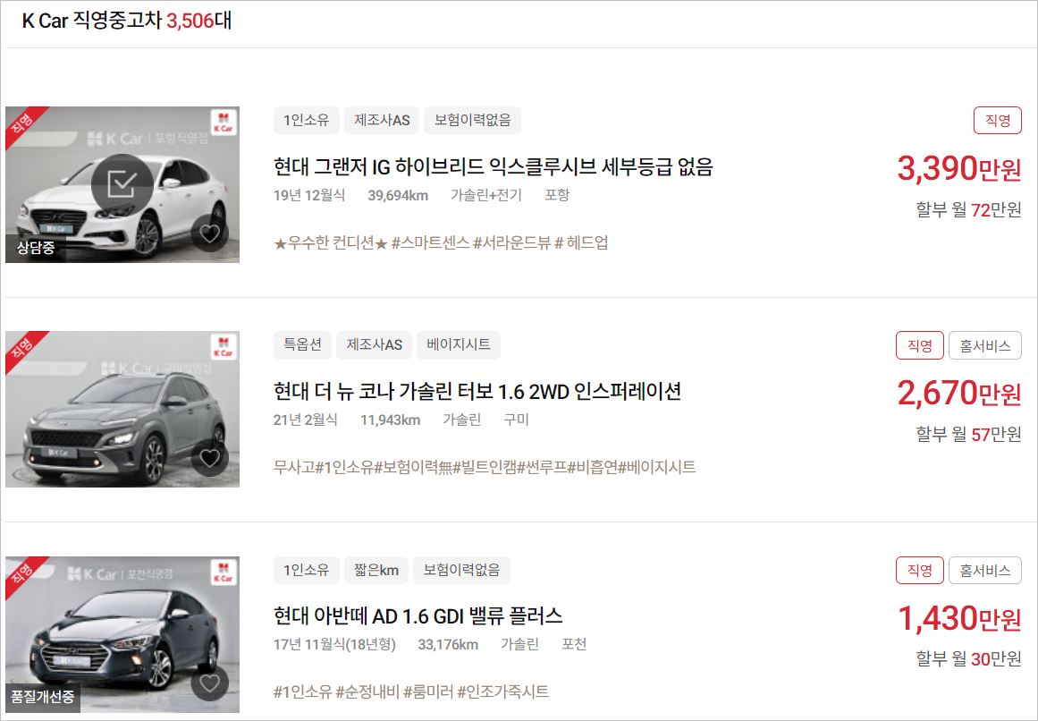 중고차 시세는 온라인 사이트에 들어가면 거의 비슷하게 알 수 있습니다. 여기서 +- 얼마가 생깁니다. 개인적으로 엔카나 K-car 등 공신력 있는 중고 사이트에서 구입하는 것을 추천드립니다. 차량 검사와 시험이 완료된 차는 다른 차에 비해 2-300 더 비쌉니다. 하지만 이게 훨씬 유리합니다.