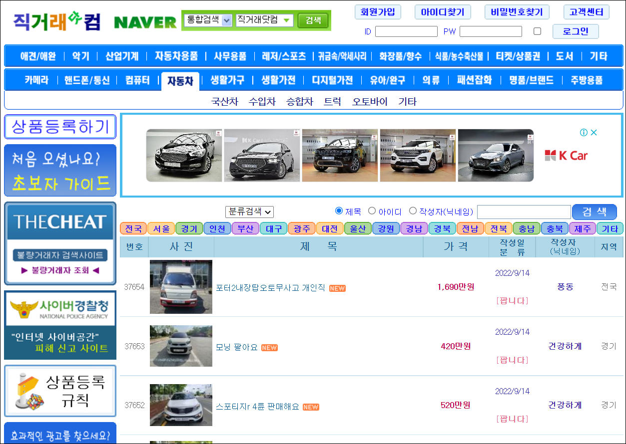 차를 안다면 충분히 저렴한 가격에 차량을 구매할 수 있는 사이트입니다. 개인과 개인 간의 거래이기 때문에 자동차에 대해 알지 못하다면 주의할 필요도 있습니다. 차 상태나 AS 등도 개인간 서로 알아서 처리해야 하는 고충이 있지만 직거래를 선호하시는 분들에게는 좋은 사이트라 여겨집니다.