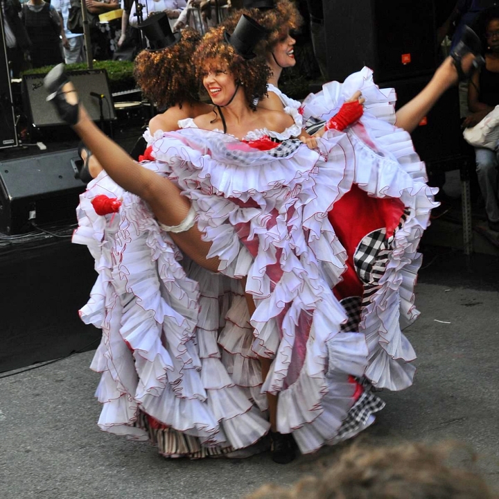 프랑스어 19세기 중반에 파리의 무도장에서 유행한 춤의 일종으로 긴치마를 입은 여성들이 줄을 지어서 발을 들어 올리며 추는 춤이다.