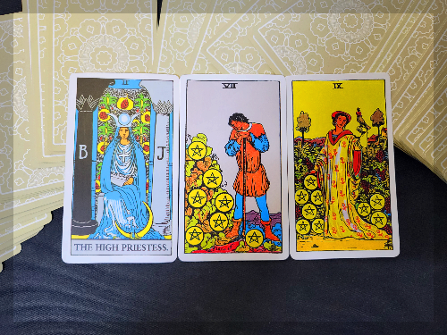 각 카드를 개별적으로 보는 것도 중요하지만, 세 카드가 함께 만들어내는 정서적 흐름이 더 중요합니다. 예를 들어 겉으로는 소극적인 모습이지만, 내면에서는 감정이 활발히 움직이고 있으며, 조만간 행동으로 드러날 수 있다는 식의 맥락 이해가 필요합니다. - 슈트(Suit)와 상징의 조화 해석