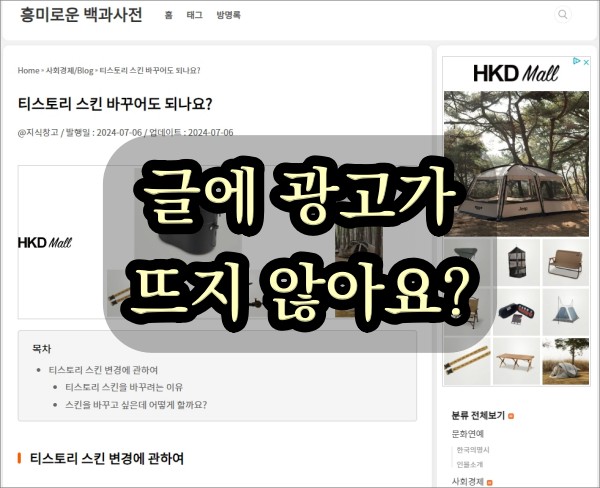 티스토리 광고가 보이지 않아요