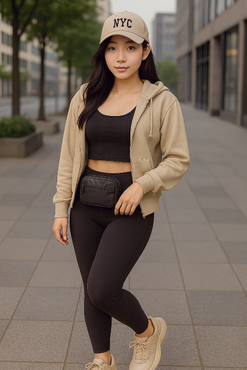 자연스럽고 멋스러운 애슬레저 감성 스타일링 제안, 요즘 20대 여성들 사이에서 정말 핫한 스트리트 힙스터룩! 오늘은 도시적인 분위기와 편안함을 동시에 잡은 스타일로, 애슬레저 무드를 살린 코디를 소개해 드릴게요. 레깅스와 크롭티, 그리고 후드티를 조합한 코디입니다. 운동과 일상에서 편하게 입을 수 있어서 좋습니다.