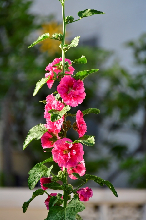 여름이 시작하면 꽃이 피고, 여름이 끝나면 지는 접시꽃입니다. 6월에 피기 시작하여 8월 하순까지 핍니다. 꽃 모양은 부용과 무궁화와 많이 닮아 있습니다.