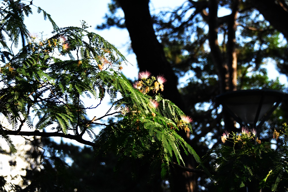 어련한 꽃 모양은 지나는 사람을 홀립니다. 그 어떤 꽃보다 아름다운 자귀나무 꽃입니다. 나무의 껍질을 먹으면 부부의 금실이 좋아진다는 전설이 있습니다. 희한하게도 밤이 되면 잎들이 오그라 들어 부부가 합?일 한다 하여 야합수(夜合樹)로 불리기도 합니다.