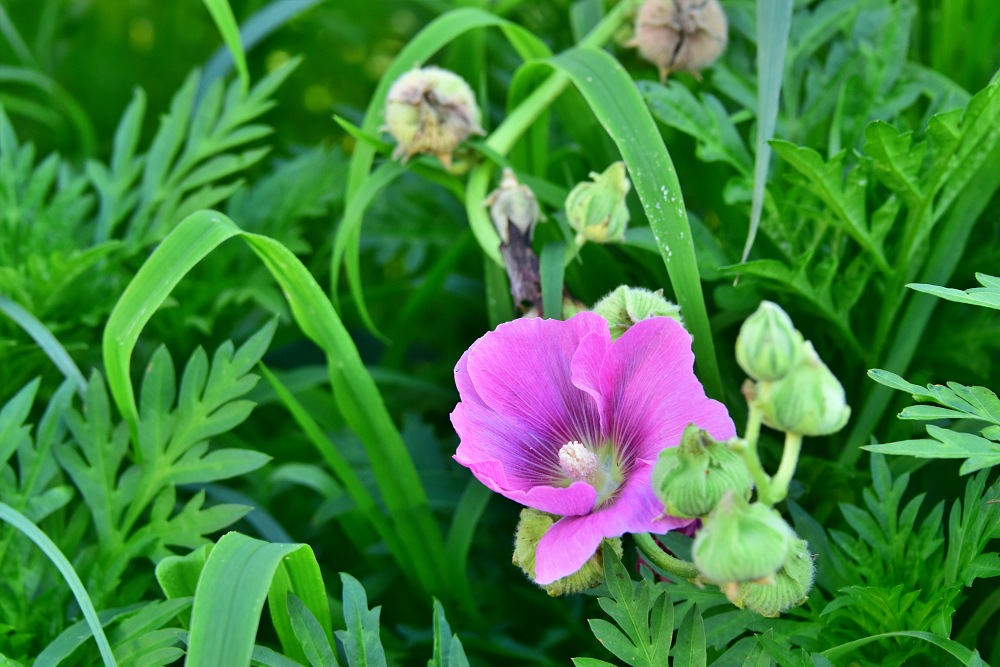 접시꽃은 보면 볼수록 무궁화와 정말 닮았습니다. 접시꽃 역시 여름의 꽃입니다. 6월부터 피기 시작하여 9월 중순까지 핀다고 합니다. 뿌리와 꽃은 약용으로도 사용된다고 합니다.