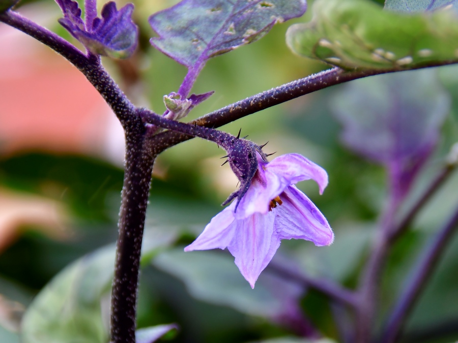 가지꽃은 낮에는 활짝 피고 저녁이 되면 시들며, 자가수분 또는 곤충에 의한 타가수분이 이뤄집니다. 아름다운 색감에도 불구하고 화려하진 않아 ‘소박함’이나 ‘성실함’을 상징하며, 꽃말도 ‘진실’입니다.