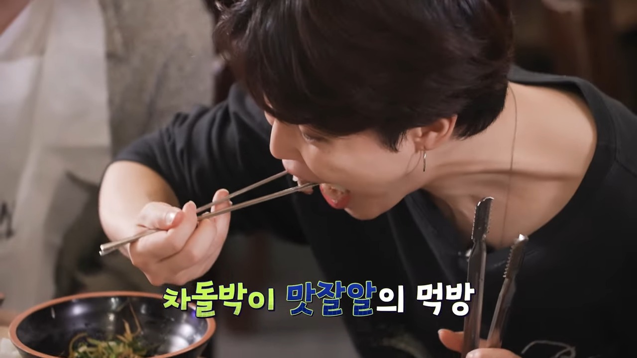 지민은 돌초밥 먹는 법을 알려 주네요. 잘 익은 차돌박이는 밥에 싸서 먹습니다. 그 맛이 최고죠.